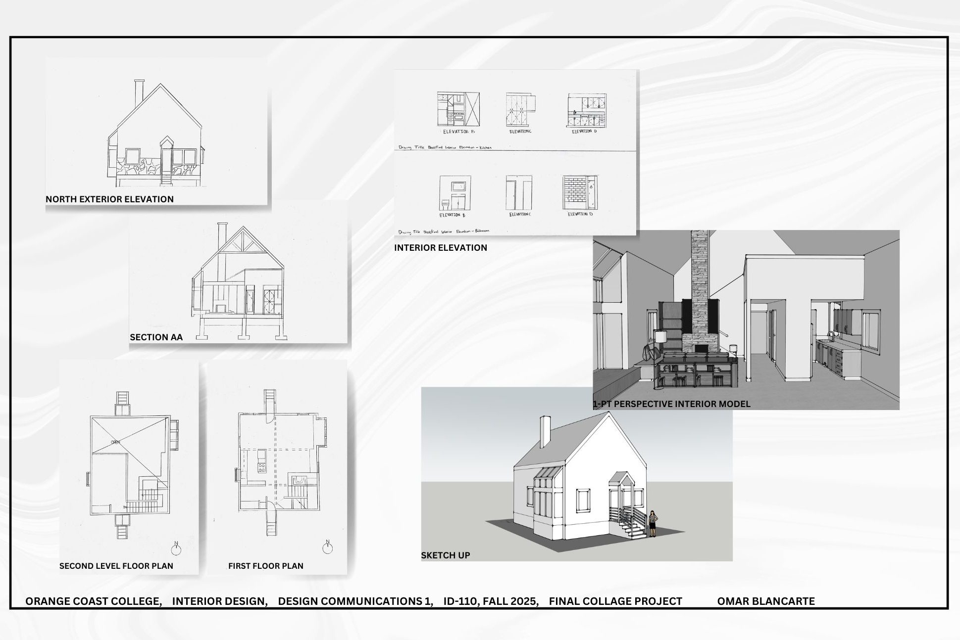 This project represents the culmination of a semester-long journey in my Interior Design Communication course, showcasing the evolution of a residential design from its conceptual beginnings to a fully realized 3D rendering using SketchUp. Each phase—starting with the initial floor plan and progressing through meticulous detailing—reflects not only technical skill but also a deep understanding of the importance of precision at every step. The process is both an art and a science; a single error can ripple throughout the design, affecting the entire flow and integrity of the project. This experience has underscored the significance of thoughtful planning and attention to detail, solidifying the foundation for my future work in interior design.